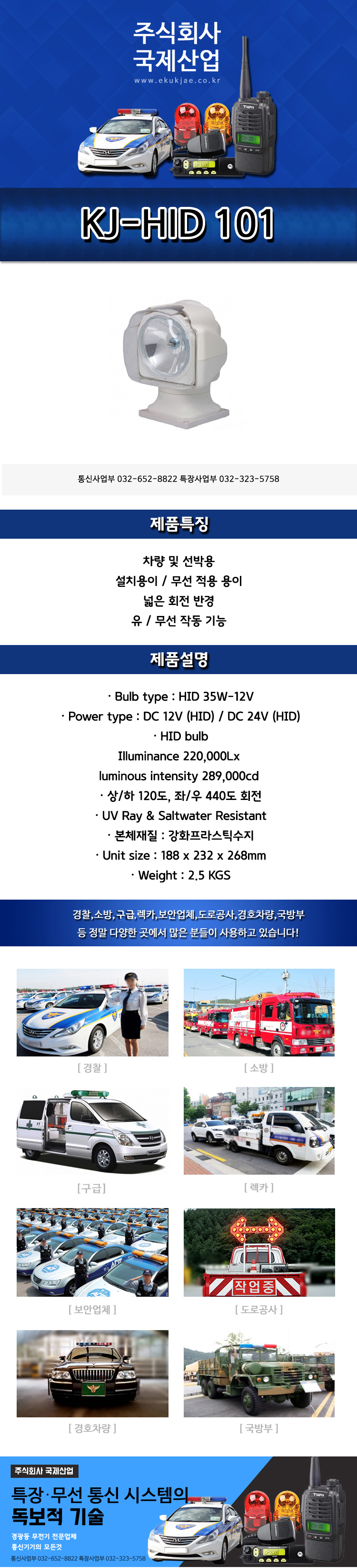 KJ-HID-101 서울,구리,남양주,하남,고양,의정부,양주,포천,동두천,김포,광명,인천,시흥,안산,의왕,성남,광주,수원,화성,용인,오산,평택,양평,이천,여주,원주,횡성,홍천,가평,춘천,화천,양구,인제,강원도,경기도,강릉,양양,평창,정선,영월,제천,고성,속초,강릉,동해,삼척,태백,단양,봉화,울진,영양,영주,예천,천안,진천,음성,충주,괴산,청주,아산,당진,태안,서산,보령,공주,세종,대전,계롱,논산,금삭,영동,서천,상주,문경,구미,김천,의성,안동,영광,고창,나주,목포,해남,여수,순천,통영,진주,창원,김해,부산,울산,경주,포항,대구,달성,LED,경광등,싸인보드,앰프스피커,특장,고소작업대,써치라이트,무전기,무선중계기,비상등,국제산업,주식회사국제산업,전광판,싸이렌앰프,안테나,멀티충전기,무전기충전기,무전기악세사리,무전기마이크,미니경광등,특수경광등,경찰경광등,경찰싸인보드,소방,국방,병원,경호,산악,등산,행사,쏠라경광등,태양열경광등.도로경광등.작업등,탐조등,유리부착경광등.리프트경광등,모토로라무전기